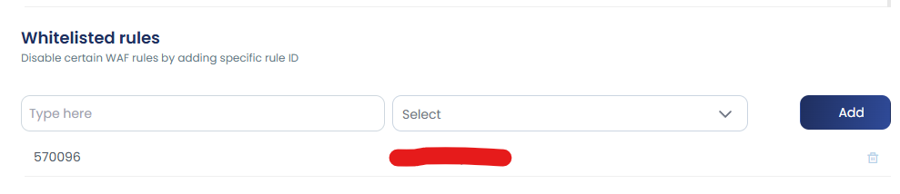 Go to Settings >> WAF & Bruteforce >> Whitelisted Rules.